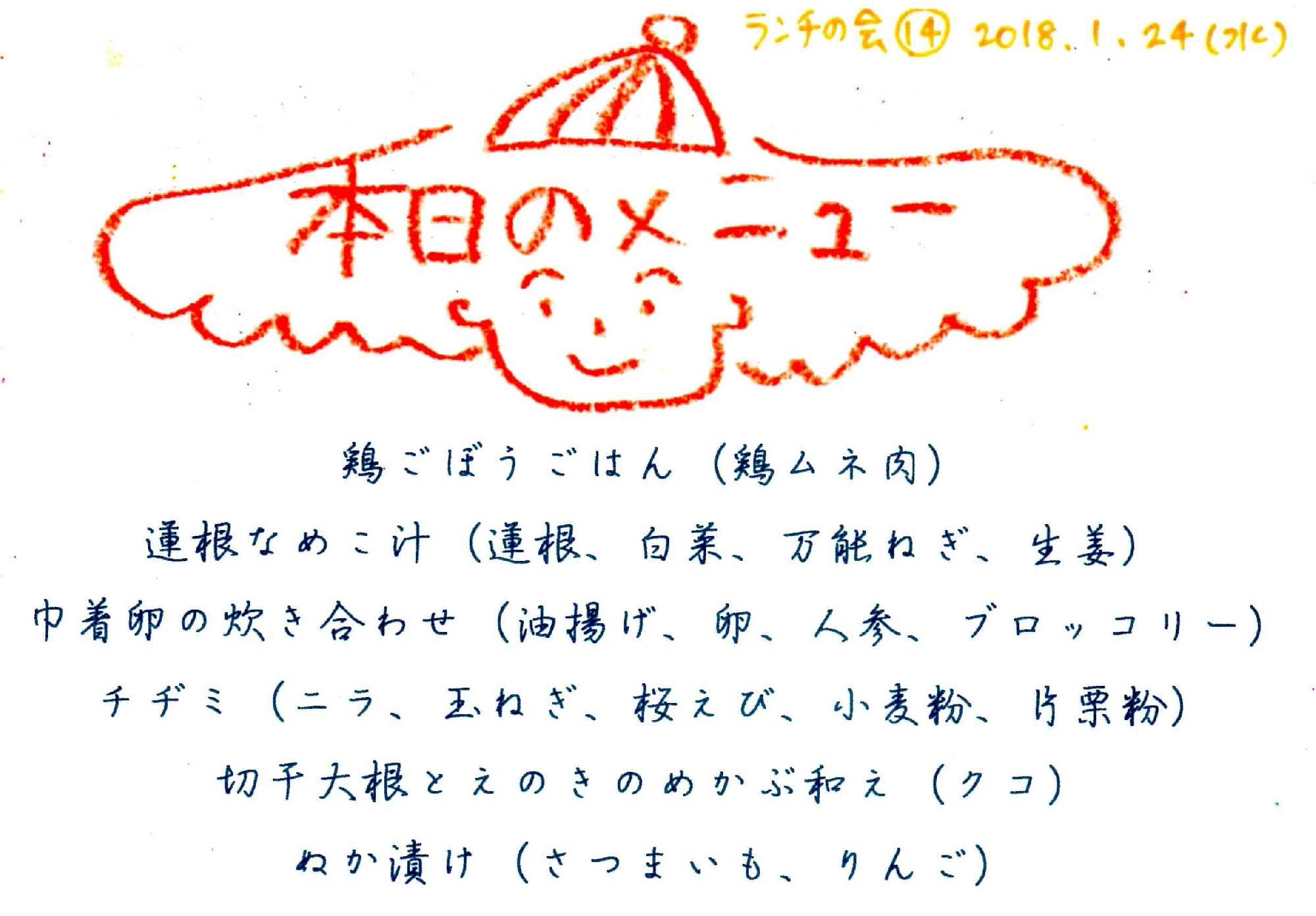 2018/01/30 09:59【スタッフ日記】1月24日ランチの会