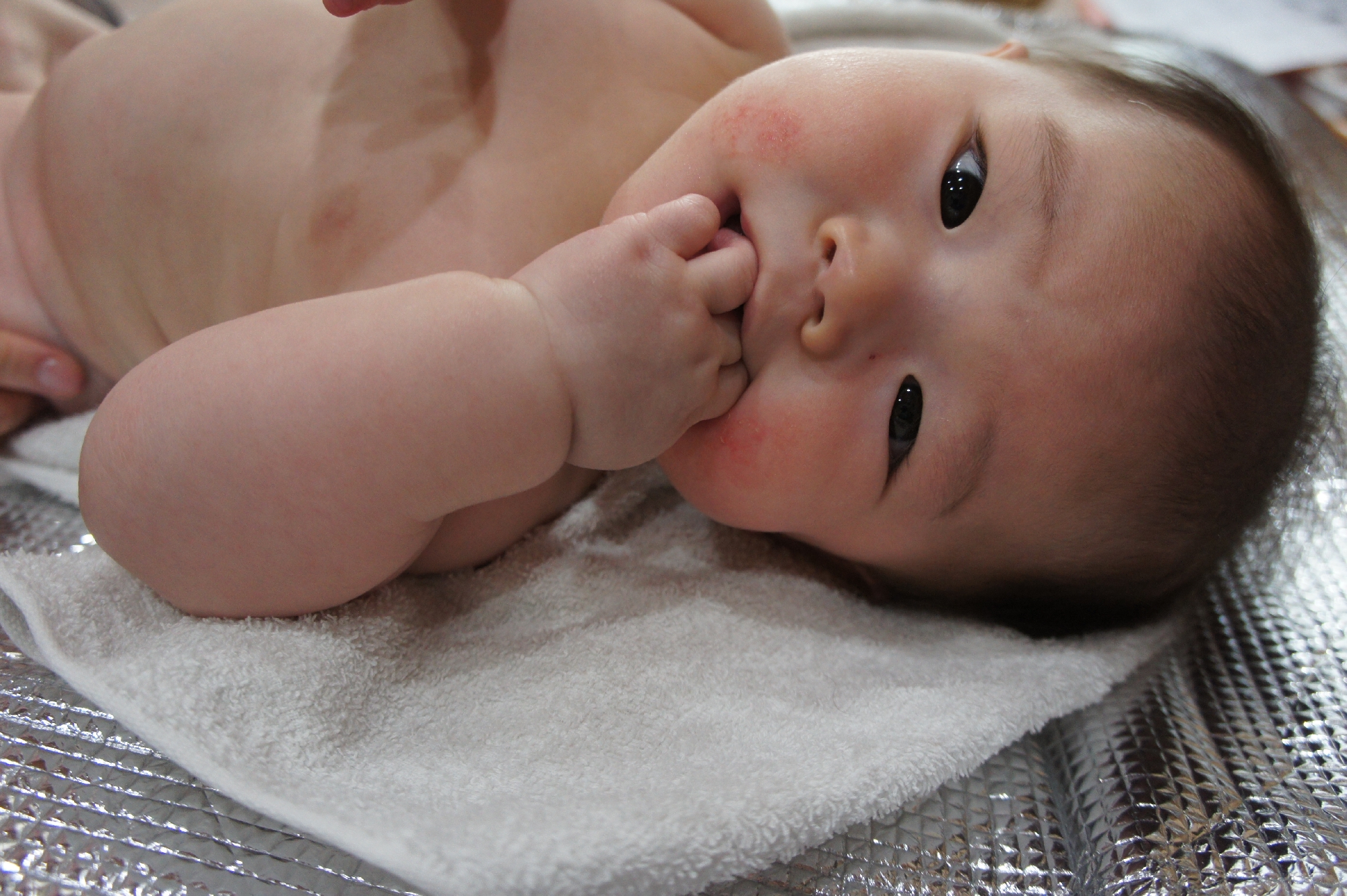 今回参加された赤ちゃん、とってもご機嫌で嬉しそうにマッサージを受けていました。初めていらして初めてマッサージを受けるお子さんは、やや緊張気味だったりするお子さんもいらっしゃいますが、この赤ちゃんは何だかとってもゆったりどっしり。