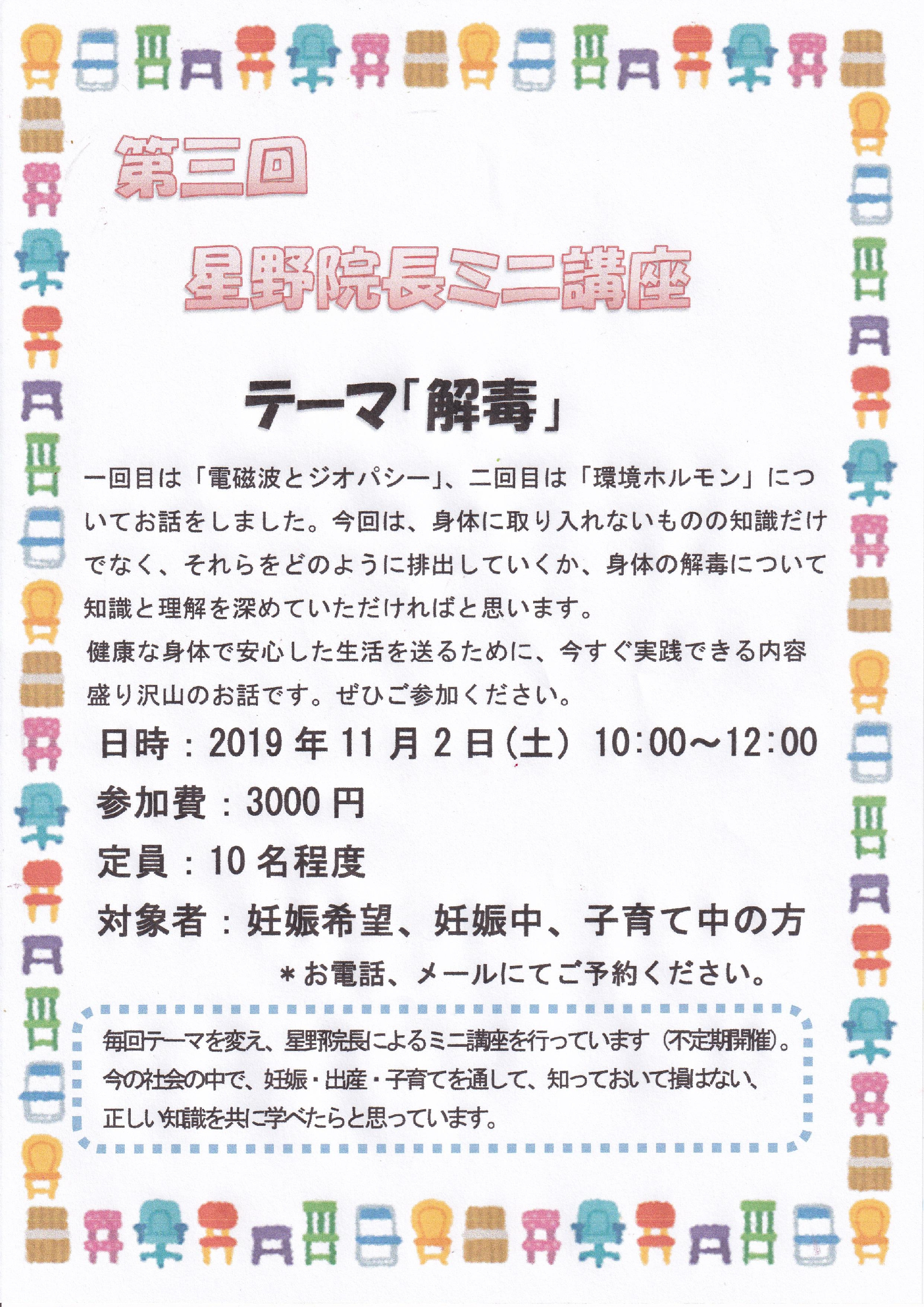 11月は、星野院長のミニ講座と手作り味噌の味見会があります。
